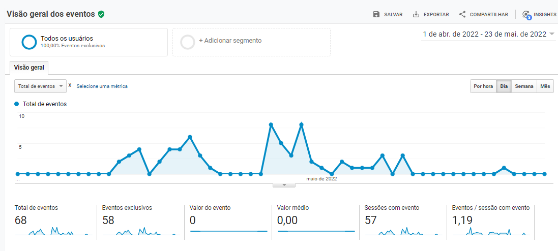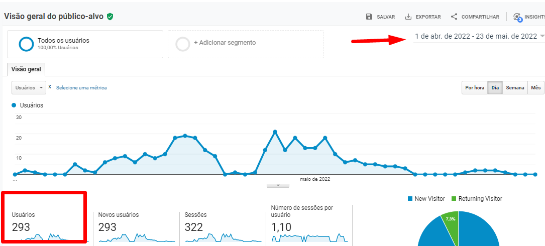 O trabalho foi iniciado em abril de 2022. Mesmo com 1 mês de projeto já identificamos excelente evolução no tráfego do site.