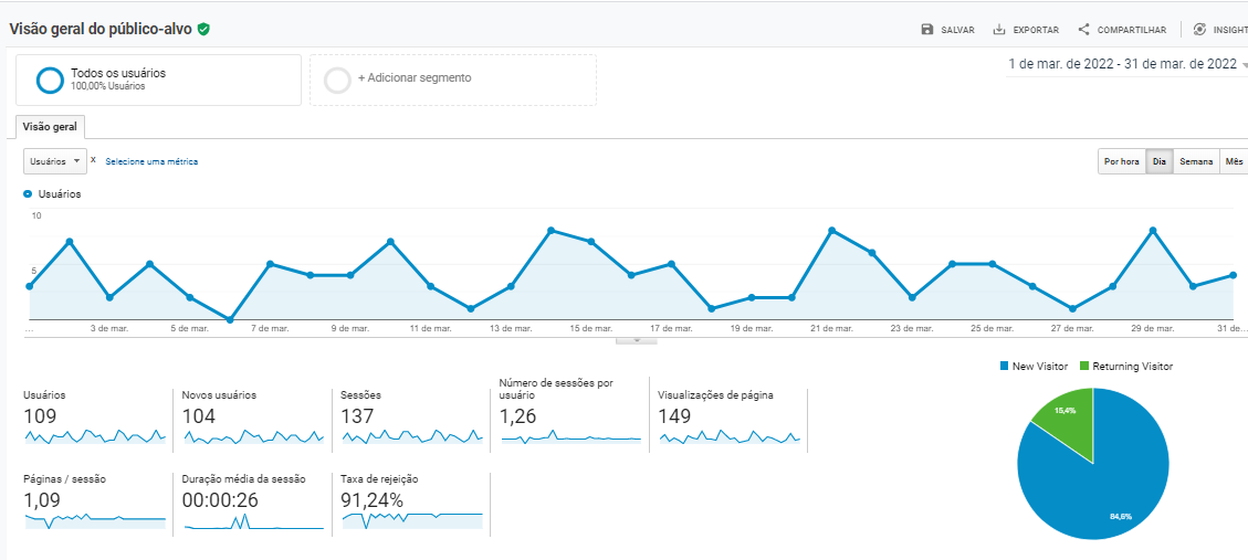 Podemos destacar o tráfego orgânico do site da corretora no mês de março de 2022. Foram 109 acessos orgânicos), representando um crescimento de 26% em comparação com o mês anterior.