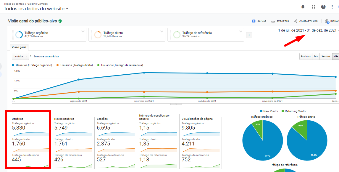 Na próxima imagem, apresentamos o registro do tráfego orgânico desde o início do projeto até dezembro de 2021. Confira!