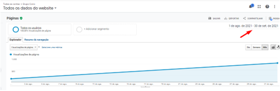 Na imagem a seguir, é possível observar o crescimento expressivo do tráfego orgânico no site da empresa de copos personalizados para festas no mês de setembro de 2021.