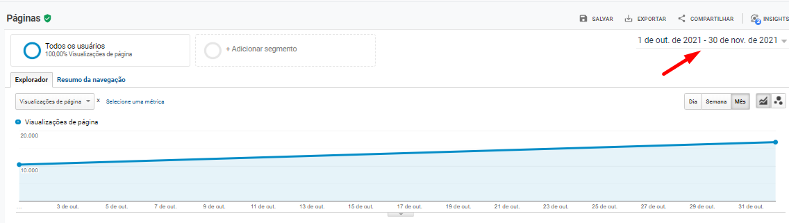 A imagem abaixo, retirada do Google Analytics, demonstra o crescimento das visualizações de páginas mês a mês.