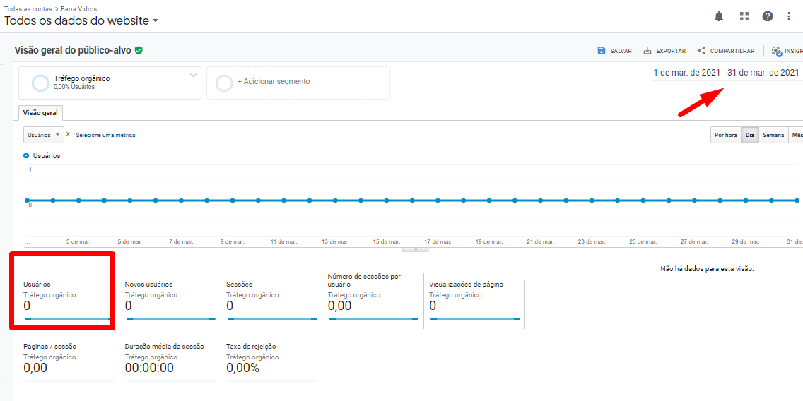 Antes do projeto, o site não registrava nenhum tráfego orgânico, o que resultava na perda de potenciais clientes.