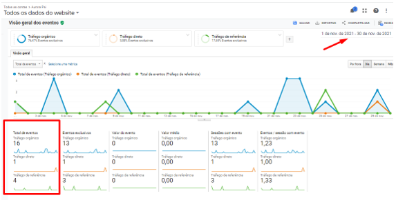 Imagem: Demonstração dos eventos de tráfego orgânico, realizados no mês de outubro de 2021 no site.
