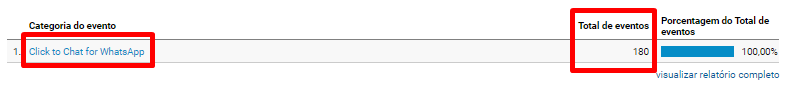 Na imagem acima, demonstramos os eventos realizados no site no mês de novembro de 2021. Esses eventos rastreáveis foram feitos via WhatsApp do site. Além desses, diversos contatos são feitos através do telefone da empresa.